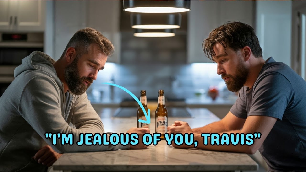 The script sets its stage with cinematic precision: It’s past midnight. Taylor Swift and Kylie Kelce are both away, leaving Jason and Travis alone in Travis’s “massive house.” The narrator makes a pointed jab: this is “the kind of house Jason could never afford, despite his own successful NFL career”. The scene is set for a confrontation, and the narrator delivers.