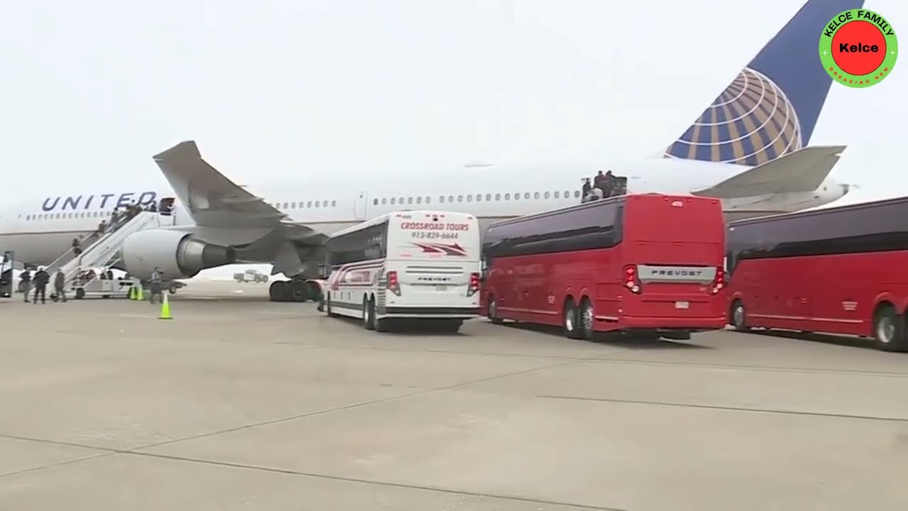 Travis kelce & teammates board the plane to Colorado kick off the Chiefs vs  Denver Broncos