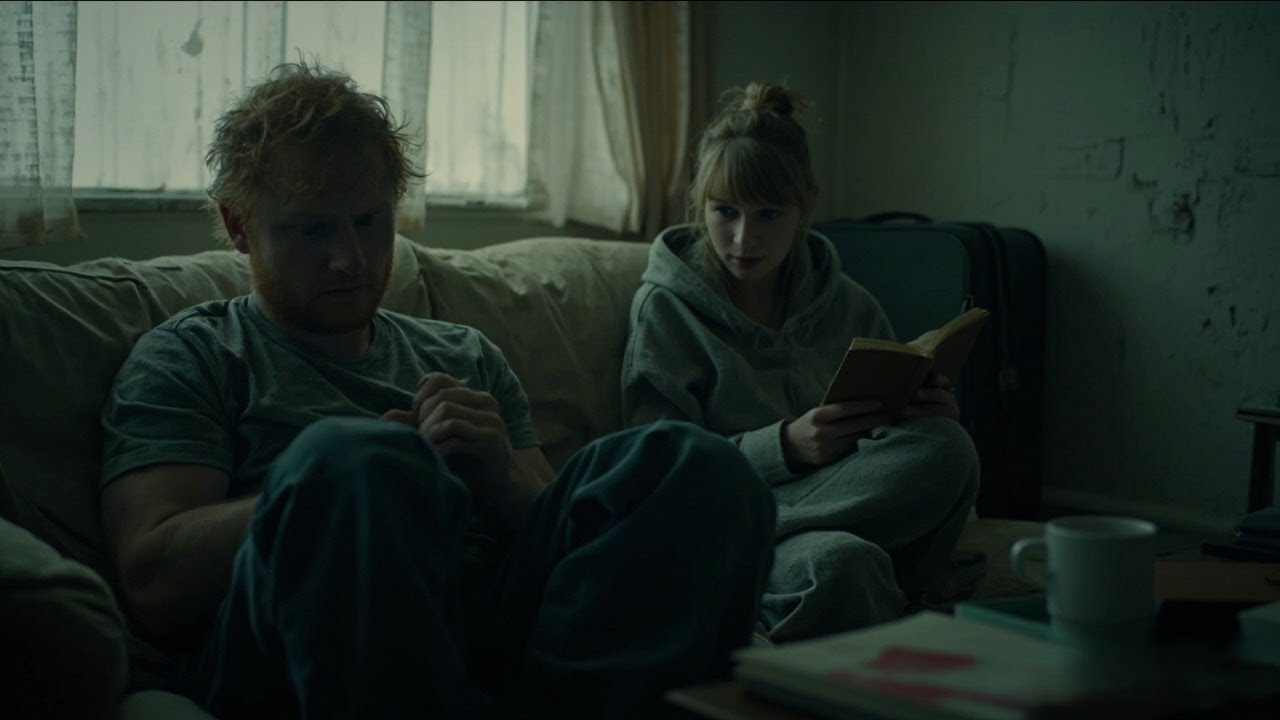 I’m not leaving. Taylor Swift. Ed stands up, opens the door. Taylor is standing there with a suitcase. No makeup, sweatpants, hair in a messy bun. What are you? I’m not here to talk, Taylor says. I’m here to sit. Grief doesn’t need words. It needs presents. She walks past him into the house. I’m staying for 2 weeks.