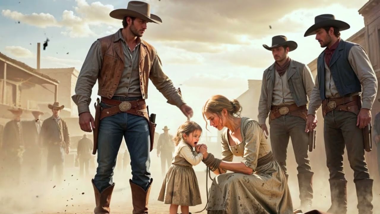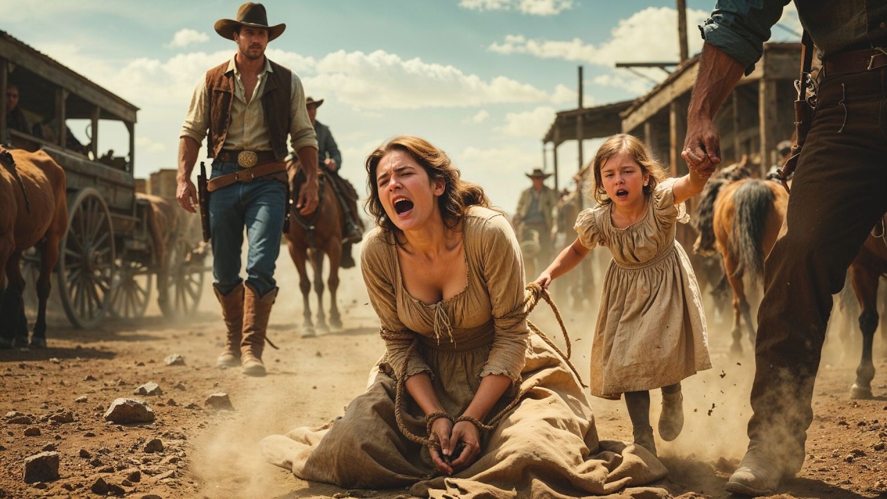 Her tears carved thin lines down her cheeks as she reached toward the small child being pulled from her. “Emily!” her voice cracked. The girl was four, dressed in a faded calico dress, boots scuffed from long walks. One of Bart Crowley’s hired men dragged her toward a waiting wagon. Emily twisted, little hands clawing the air for her mother.