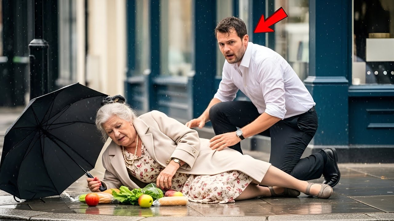 But fate, it seemed, had a cruel sense of humor. Halfway down the block, just as the towering office building came into view, a faint cry pierced through the rain. Ethan slowed, scanning the empty sidewalk. There, near the corner, a frail old woman lay motionless. Her groceries spilled. An umbrella snapped beside her. Cars sped past. People rushed by, no one stopping.