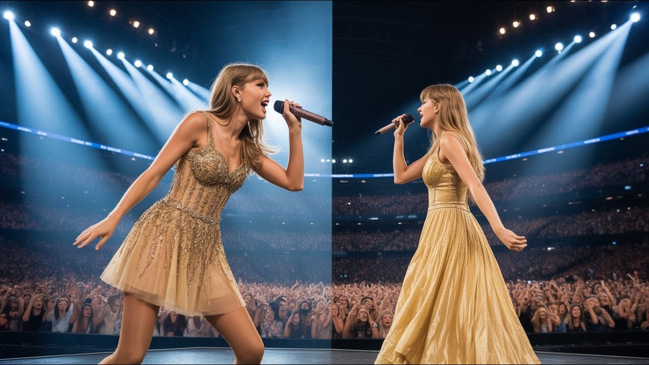 For the first time in 15 years, she was at a Taylor Swift concert, but this time not as an audience member. Sophia slowly walked toward the stage. Same blonde hair, same blue eyes, same facial features. Her clothes were even a gold dress similar to Taylor’s. The cameraman was the first to notice her. Two identical people appeared on the big screen and the stadium fell silent in amazement.