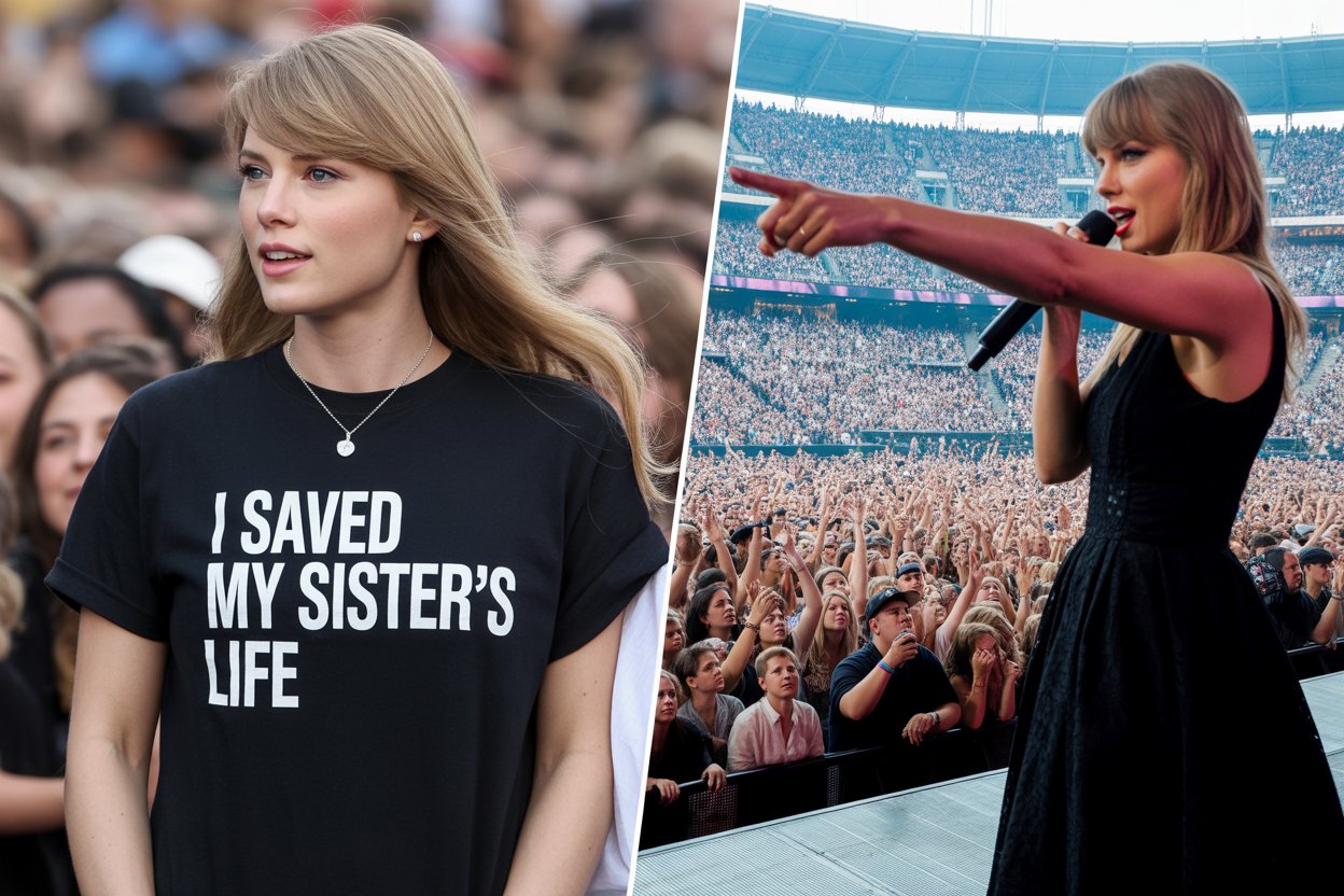 She didn’t post about it on social media. She didn’t seek attention or praise. She made that t-shirt as a quiet statement of pride, not in herself, but in the fact that her sister was alive and thriving. That night at Metife Stadium, when Taylor noticed that simple sentence, “I saved my sister’s life,” she recognized something extraordinary.