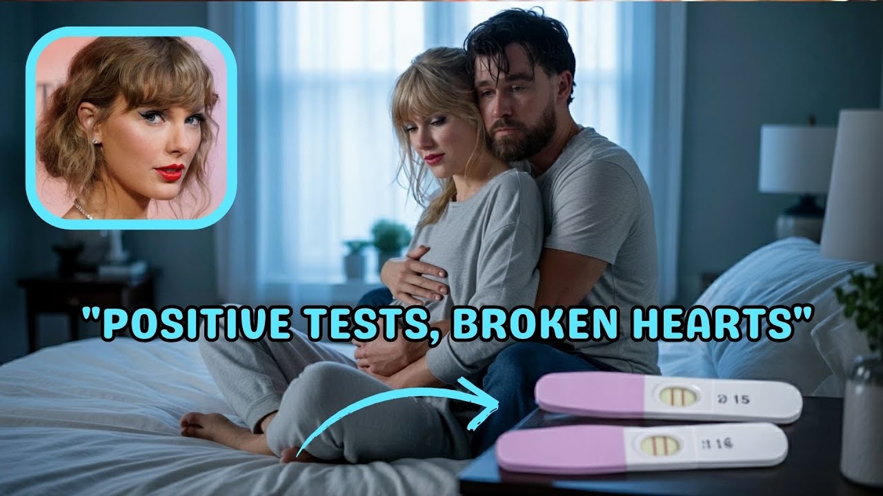 Taylor Swift’s hands were shaking. She sat on the bathroom floor, her back against the cold tile wall, knees pulled to her chest, staring at three pregnancy tests lined up on the marble counter. All three showed two pink lines. All three were positive. From behind the bathroom door, Travis’s voice called out, concerned.