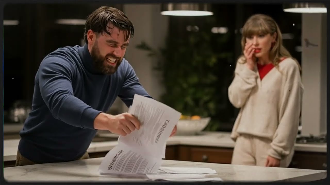 Travis Kelsey threw the prenuptual agreement onto the kitchen table so hard the pages scattered. Taylor Swift flinched at the sound, her hands instinctively moving to her chest. They’d signed it 2 days ago. Two days of silence, two days of awkward glances and conversations that died before they started.