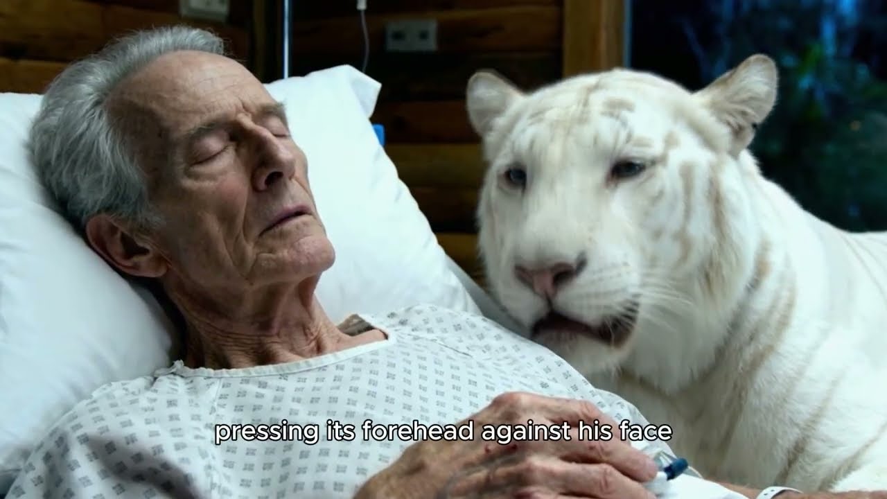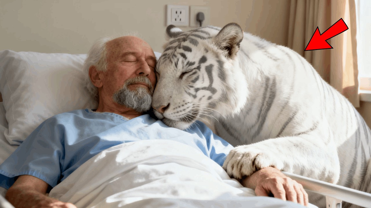 ” She stared at the words only a few weeks remaining in William’s medical chart. And at 2:00 a.m. that night, Simba, escorted by four handlers, quietly entered the ward through the hospital’s staff entrance. Everyone clenched their fists, fearing the 150 kg white tiger might lose control, but Simba moved as gently as a cloud. It walked to the bed, first nuzzling William’s hand with its nose.