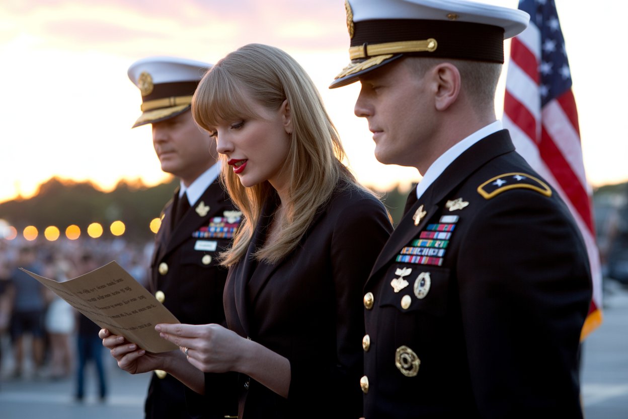 Taylor Swift didn’t see the envelope at first. She was mid chorus of You Belong With Me, dancing across the stage at Fort Liberty’s Freedom Festival, a special concert for military families in North Carolina. The energy was different here than at her usual shows. The crowd of 50,000 wasn’t just fans.