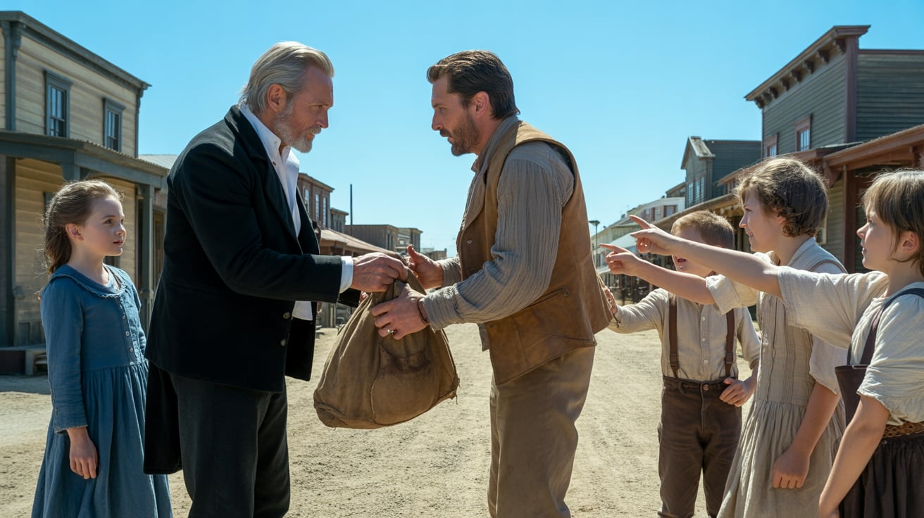 The smell of smoke and pine filled the air, mixed with the sour scent of old bread. She tied back her hair and stepped downstairs. Four pairs of eyes turned to her. The oldest boy, Josiah, crossed his arms and narrowed his gaze. The second, Eli, scowlled and muttered something about being hungry. Hannah, the girl, clung to her father’s leg like a burr, and the youngest, Benji, just stared at her with wide curiosity.