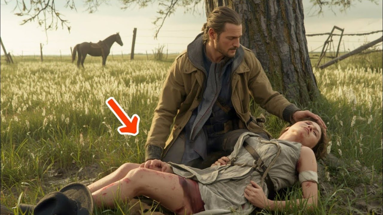 He followed the sound, pushing through the tall grass until he found her. She was huddled beneath a cottonwood tree, her dress torn and muddy, her face pale with pain. She looked up as he approached, her eyes wide and desperate. “Please help me,” she whispered, her voice barely more than a breath. “Kle knelt beside her, his hands gentle as he brushed the hair from her face.