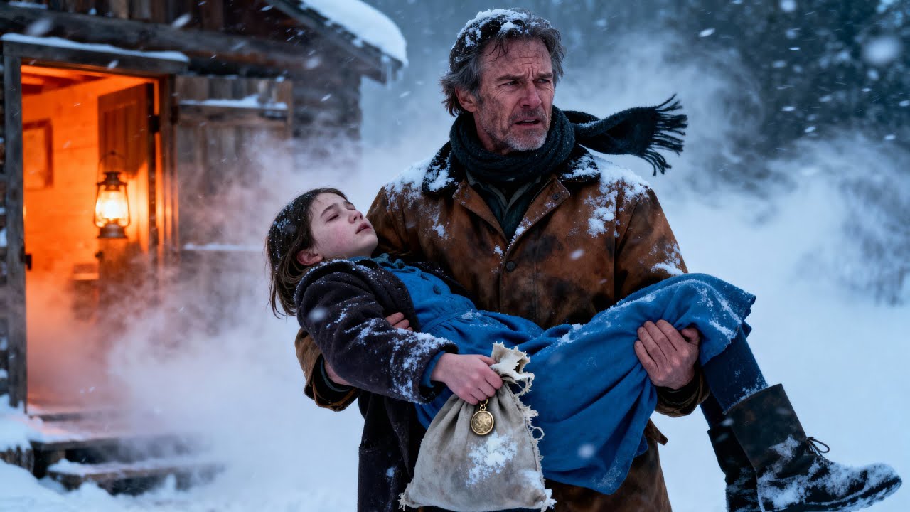 Jon had been alone for five winters. Hadn’t touched another living soul in all that time. Now his hands trembled as he rubbed warmth back into her tiny fingers. She stirred, delirious. Mama, don’t let them. They’ll find me. You’re safe, John said, his voice cracking. I promise. Her eyes fluttered open dark, wild with fear, then closed again.