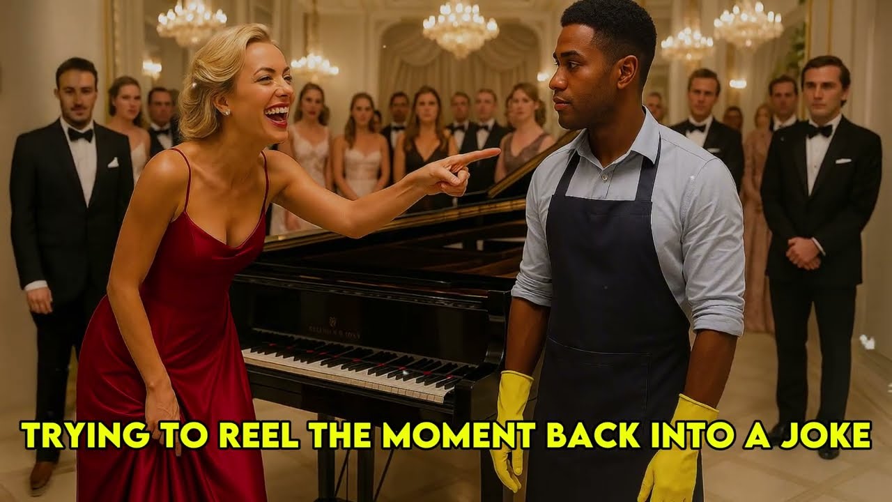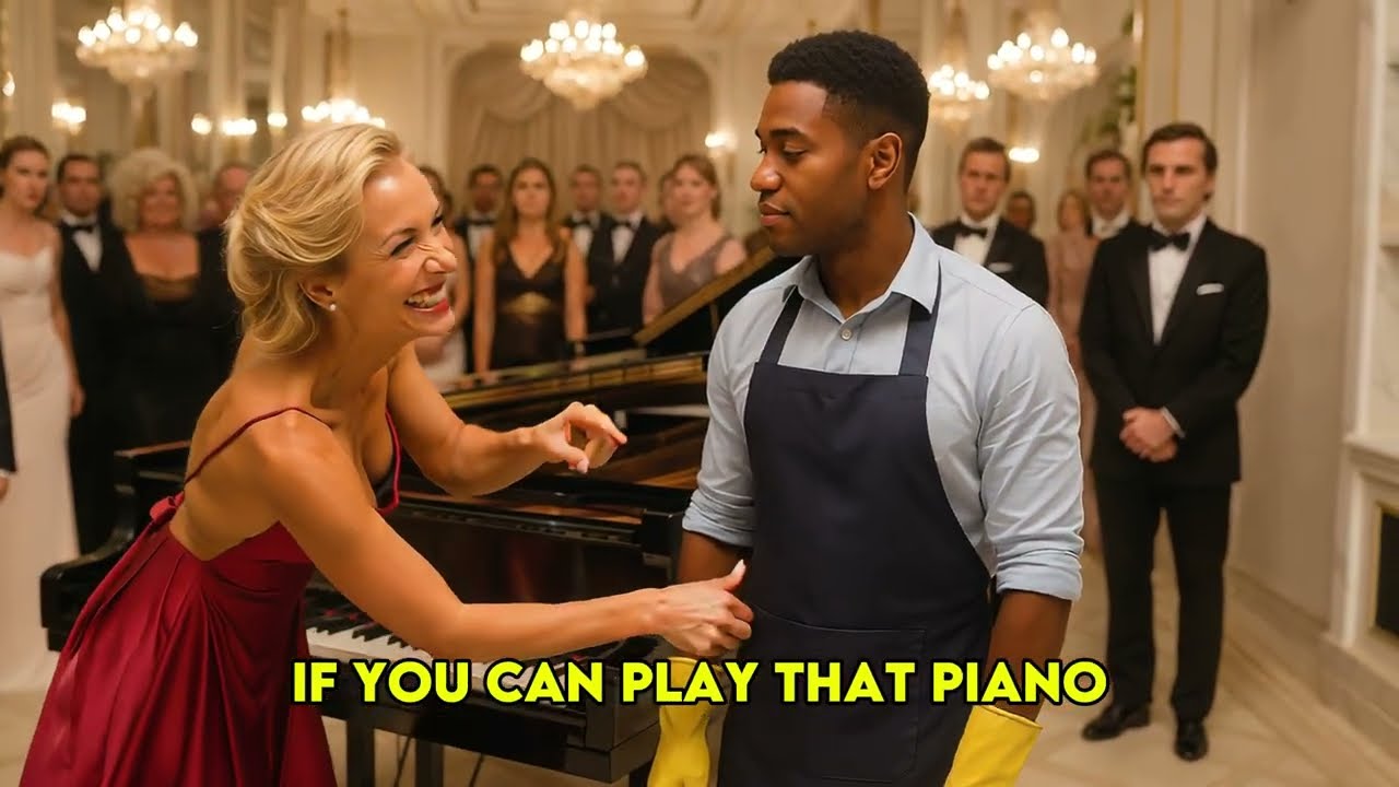 Marcus paused, not because he was tired, but because a memory brushed against him, the scent of polished wood, the cool touch of ivory keys under his fingertips. He turned away. here. He was here to clean, not to play. The crowd flowed around him. A society lady halted when Marcus happened to step near the camera’s edge. Excuse me. Go around, please. A man beckoned with a subtle wave. Hey, you.