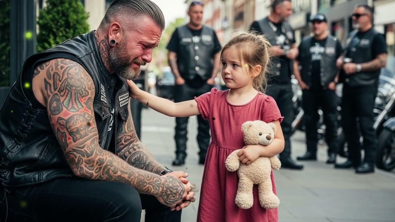 And something inside him broke completely. The tears he’d buried for years spilled freely, silently, uncontrollably. Grief for his past, rage for her pain, hope that maybe, just maybe, he could still do one thing right in this world. One by one, the other bikers approached. No laughter, no teasing, only quiet respect. They understood.