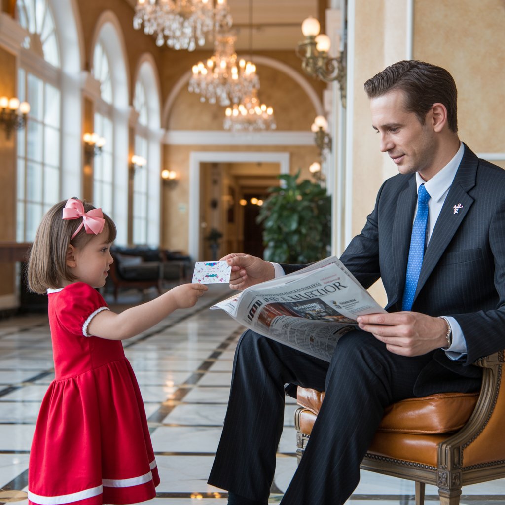 He was focused on the financial section or pretending to be when he sensed movement nearby. A small figure had approached his chair, standing just at the edge of his peripheral vision. Ethan lowered the newspaper slightly and found himself looking at a little girl. She couldn’t have been more than four years old with light blonde hair pulled up in a small bun decorated with a red bow.