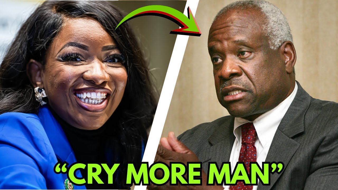 The marble walls of the Supreme Court chamber echoed with tension as Congresswoman Jasmine Crockett stood before the nine justices, her navy blue suit crisp against the rich mahogany podium. C-SPAN camera zoomed in as Justice Clarence Thomas leaned forward, his face stone cold serious. What happened next sent shock waves through the legal world.