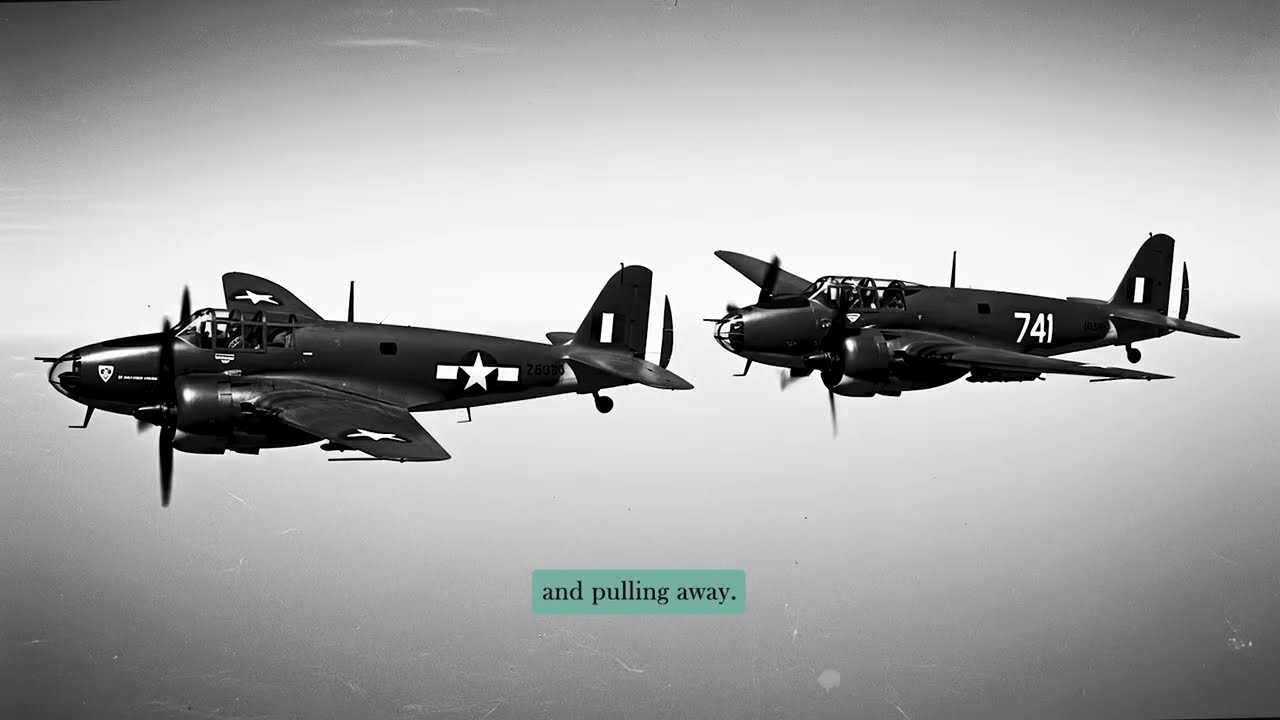 The escort bomber, the $5.6 million flying destroyer, the plane with 16 guns, had become the one thing it was designed to protect. It had become the target. The attack came at 4:43 p.m.. It was coordinated, professional and deadly. Three Wolf’s at the same time from three different vectors high right, low left and one flown by.