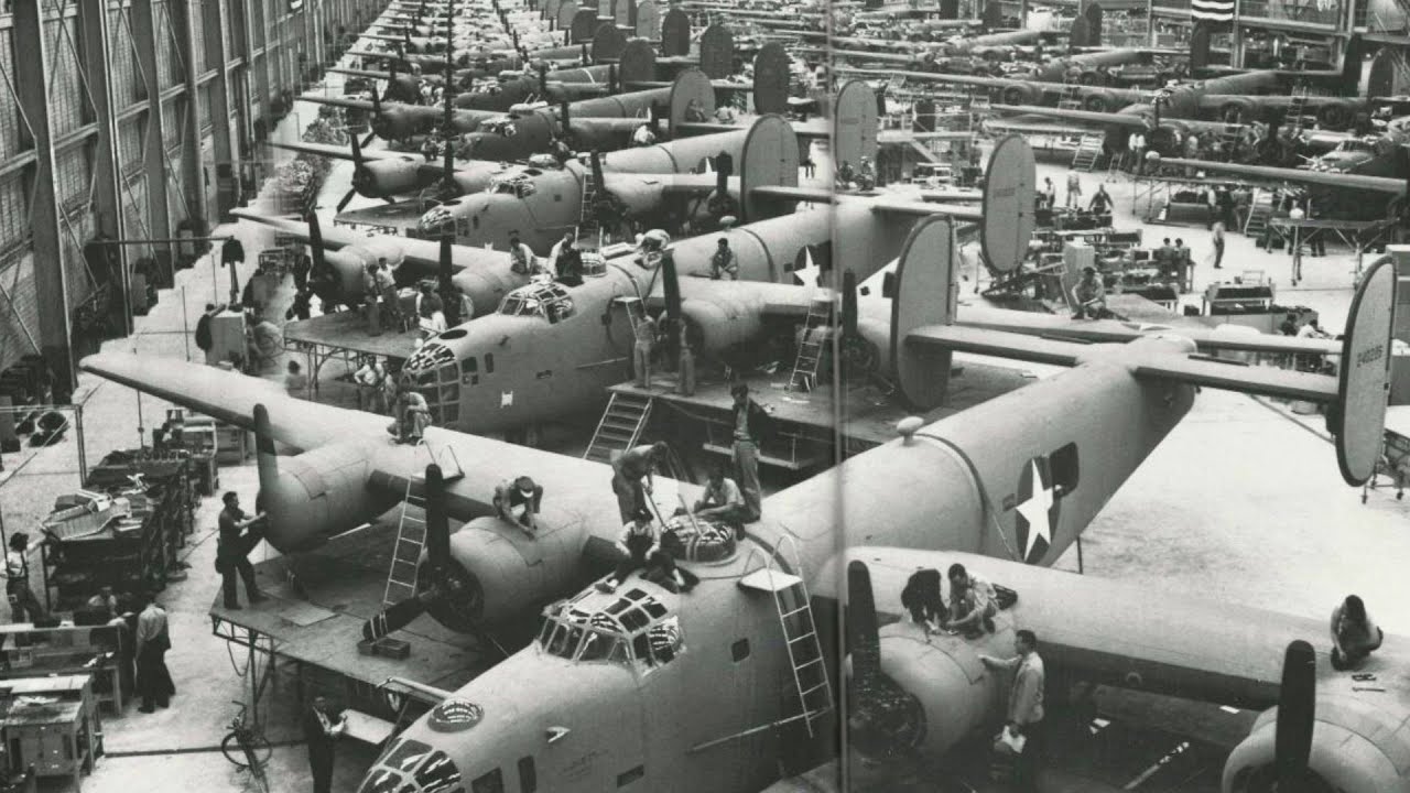 As he sat in this office trying to comprehend the implications, another B-24 was rolling off the Willowr run line, and another would follow 63 minutes later, and another after that. Every hour of every day, an endless stream of heavy bombers flowing from a single factory that employed 42,000 workers and operated on principles borrowed from automotive assembly lines.