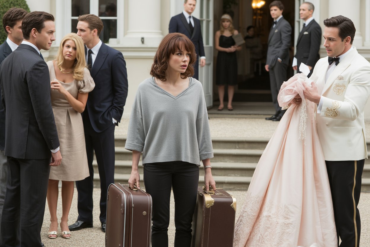 They dragged my suitcase to the front lawn and threw my clothes everywhere while laughing. My millionaire adopted family humiliated me in front of the entire neighborhood. Then a white limousine stopped right in front of our mansion. A man in a groom suit stepped out holding a wedding dress. Everything changed in 60 seconds.
