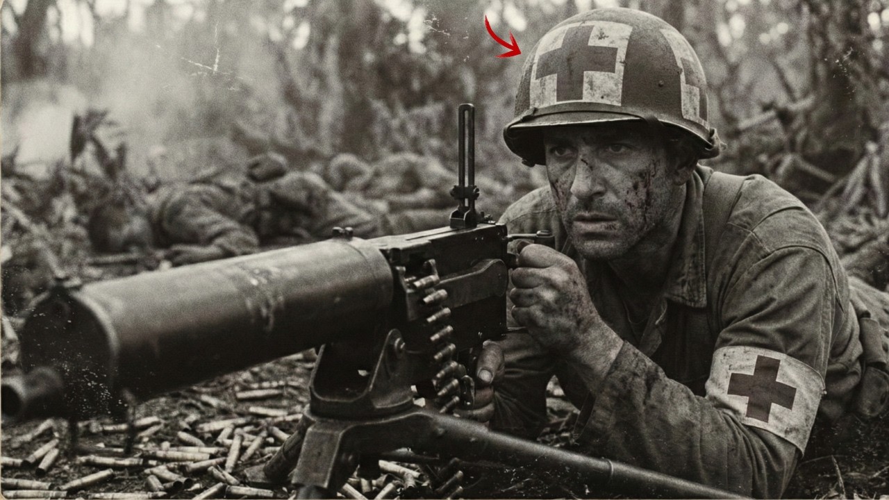He had minutes, not hours. He crawled back to the machine gun. The weapon had no ammunition, but the Japanese did not know that. He positioned himself behind the gun, gripped the handles, placed his finger on the trigger. Japanese soldiers saw the movement and hesitated, taking cover. They did not know the gun was empty.