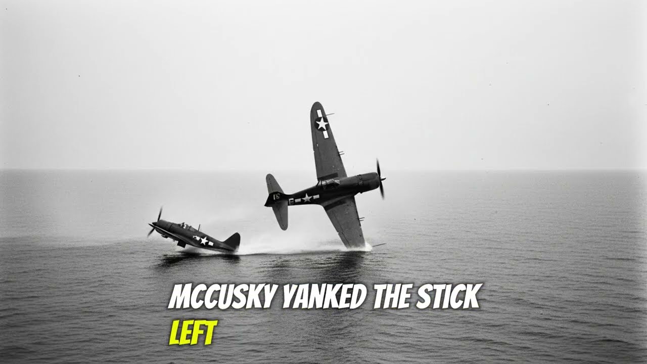 McCusky rolled right, dove for the deck, pushed the throttle to the firewall. The airspeed indicator climbed past 280, past 300, past 320 mph in the dive. The zero followed, closing slowly, firing in short bursts. McCusky leveled out at 500 ft above the wave tops. Saltwater spray misting his canopy. Engine screaming.