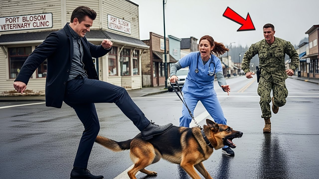 A rich man’s son viciously kicked a helpless German Shepherd a cruel act meant to break the spirit of its loving owner she was the last person standing in his powerful father’s way the final obstacle in a corrupt plan to seize the entire town they thought she was alone that she would be easily broken but what the bully didn’t know was that a Navy SEAL seeking peace from war was watching from the shadows now he was about to unleash a storm of justice that would change their town forever Before we begin tell us where you are watching from and if this story touches your heart