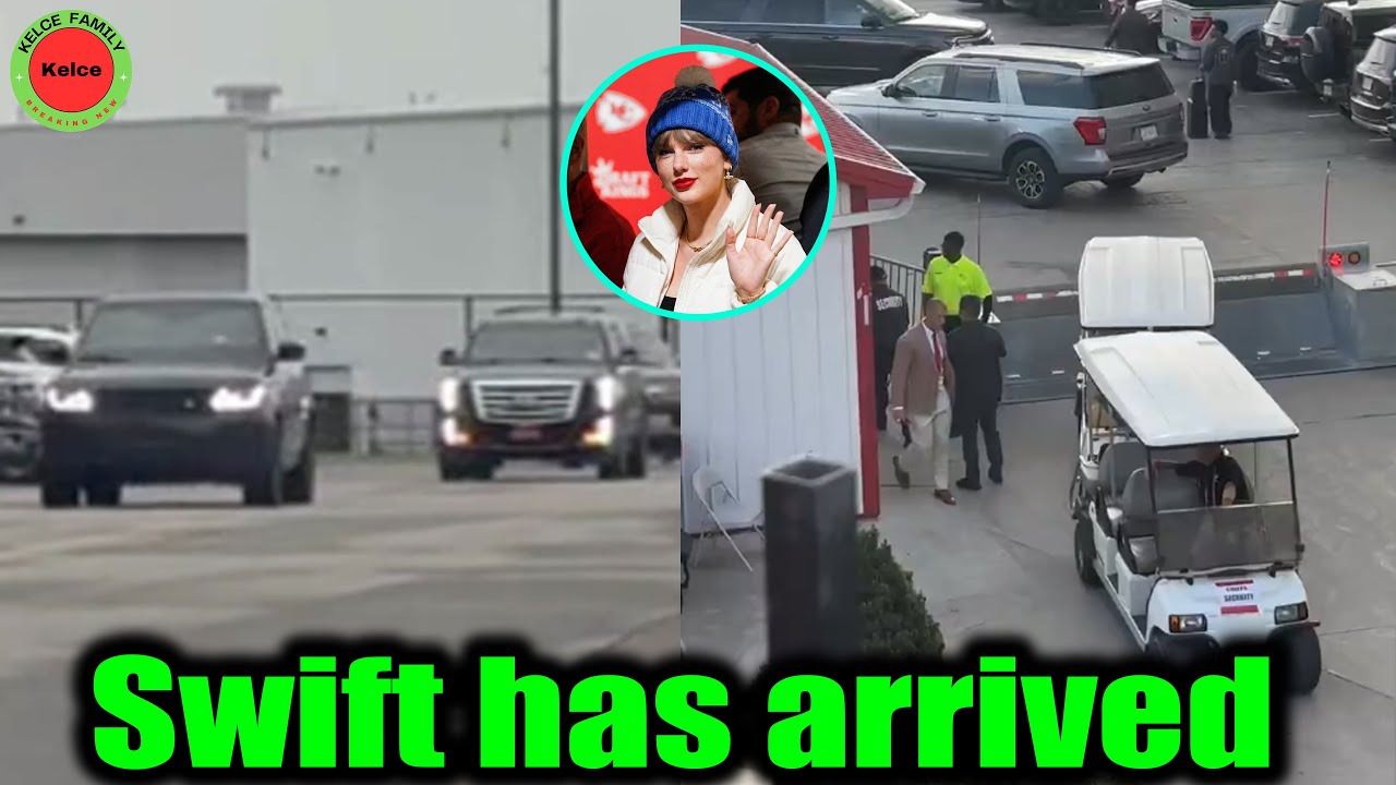 Security personnel were seen directing the convoy swiftly toward the enclosed parking lot, shielding the occupants from the prying eyes of the paparazzi and the roaring crowd. A security electric vehicle and several men in sharp suits coordinated the movement, fueling the fervor. While the tinted windows kept the star hidden, the consensus on the ground was absolute. The “Queen” had returned to her kingdom, ready to support her fiancé, Chiefs tight end Travis Kelce.